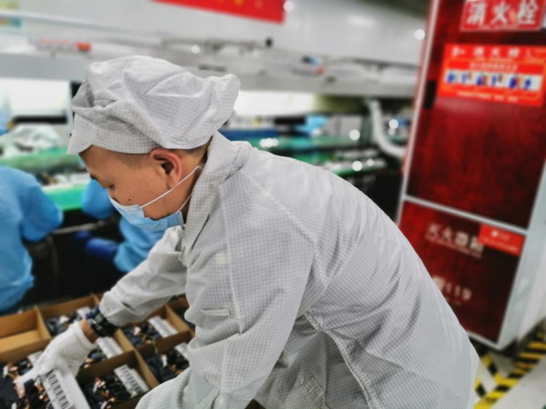 制造中心的高级生产主管王家翔、生产经理陈长春、工会主席黄国剑等相关负责人第一时间报名,共同组建了一条临时包装线体,因阵容“豪华”,该线体被广大员工戏称为“最豪华包装线”。身穿蓝色工衣、头戴蓝色工帽的他们,有条不紊地进行手头上的工作,与一线员工无异。唯一不同,可能就是他们下工后还需回到办公室继续奋战,处理累积了一天的工作。来自营销中心的小伙子王祥麟展现了“该出手时就出手”的风采。初上产线的他,没有产线新手的笨拙,一举一动干脆利落,完全不输产线熟练工,同事们都调侃他为“被职能工作耽误了的产线老手”。