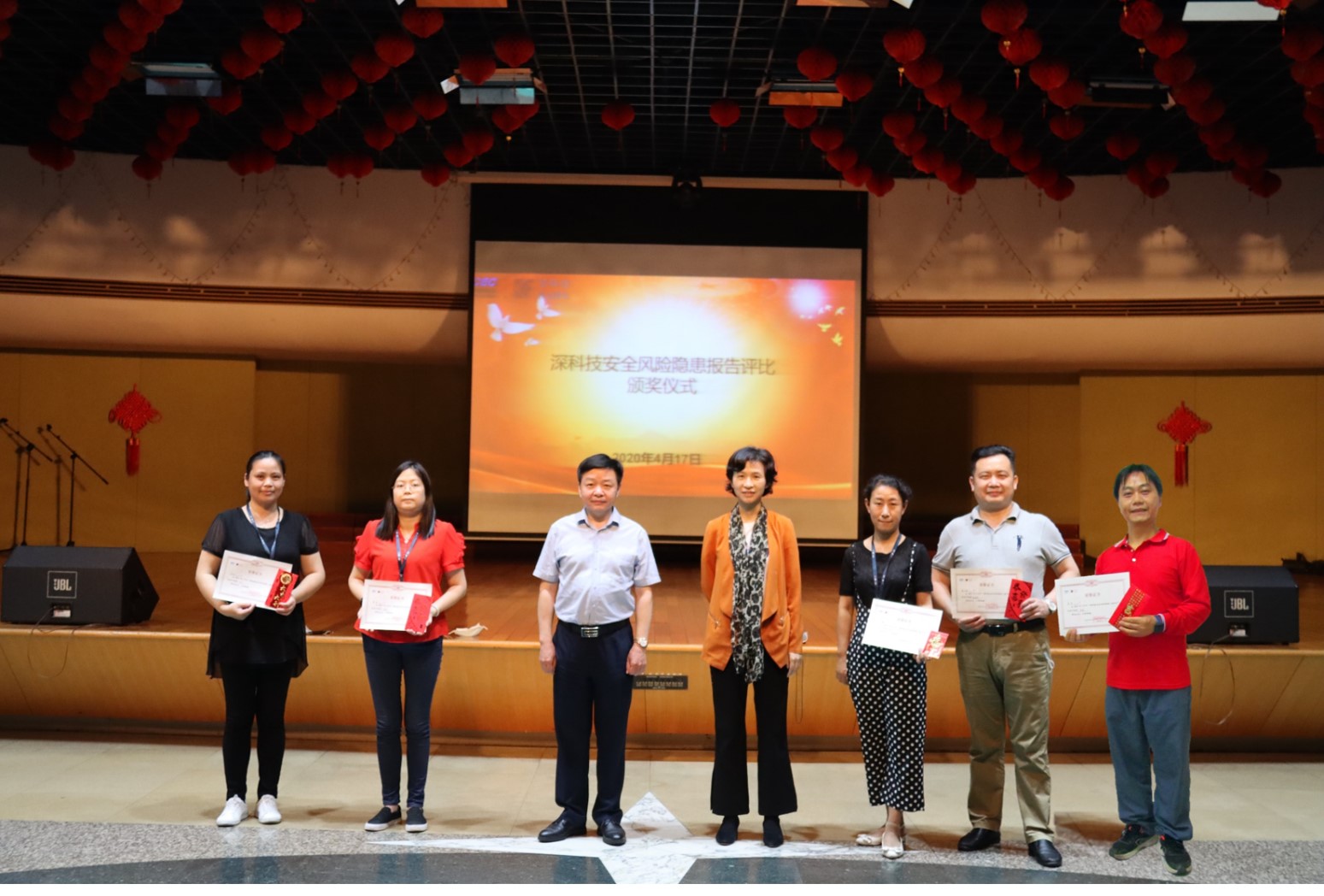 制度发布后,深科技员工踊跃参加,共提交隐患报告78项 宅男影视,经风控合规管理委员会与安全管理委员会评估,从安全隐患发生可能性,后果严重性等方面进行综合审核,决定对其中62项报告进行分级奖励,在总部颁奖大会上,曹岷为五名彩田园区获奖者颁奖,刘春林,姜乔获得一等奖,姜乔,毛静获得二等奖,易喜获得三等奖,赵光勇获得四等奖。