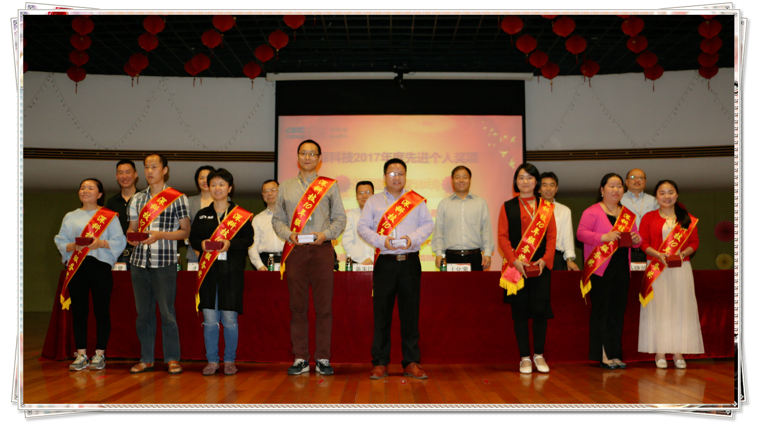 (↓ 10年长期服务奖的获奖代表上台领奖)