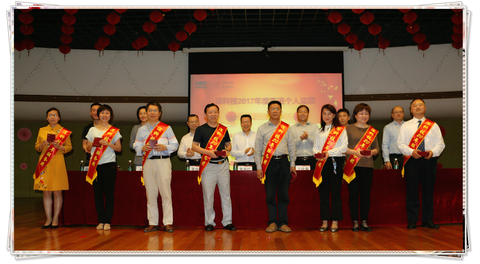 (↓ 20年长期服务奖的获奖代表上台领奖)